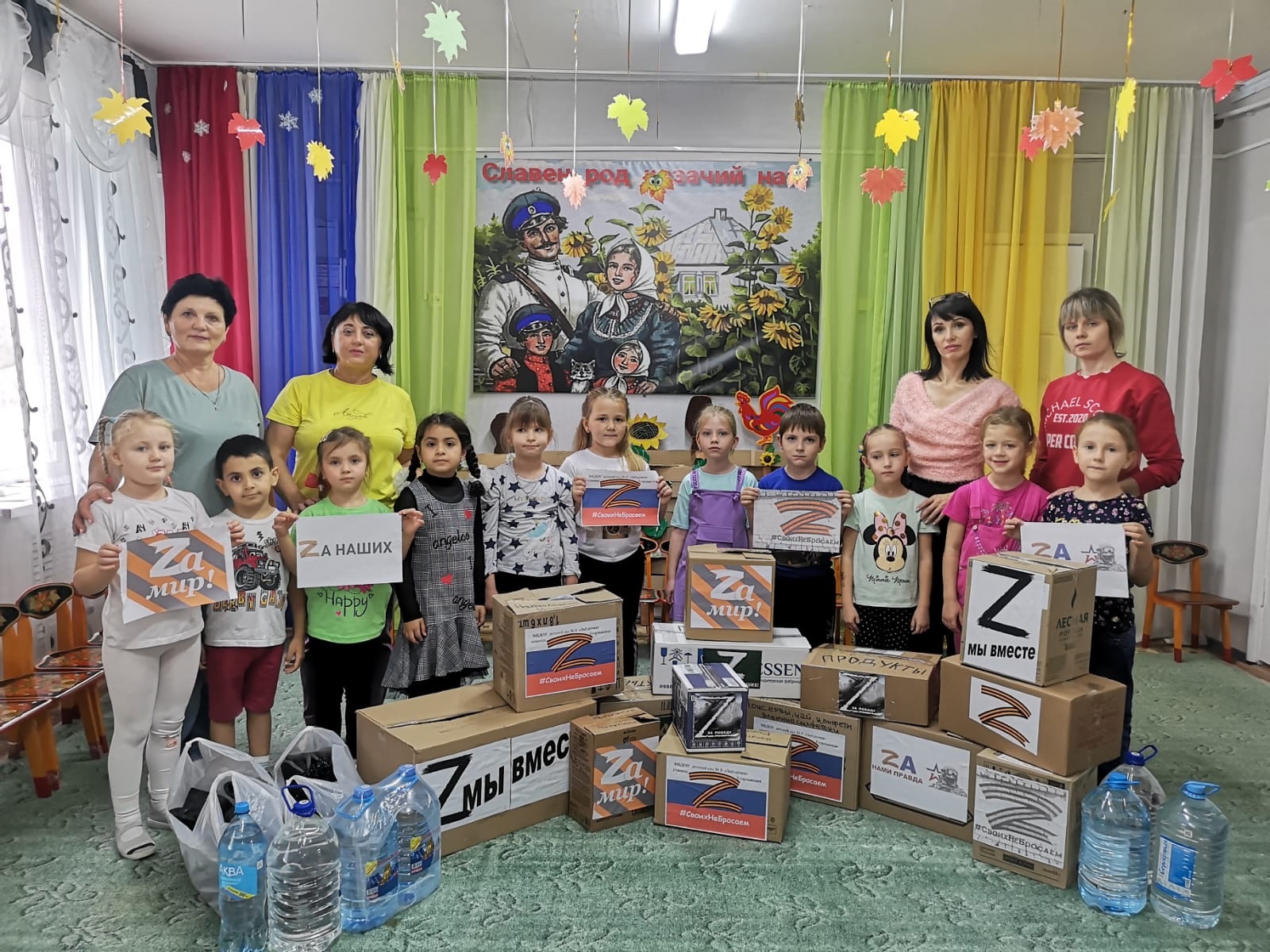 В традициях отзывчивости и сопричастности к нужному и правильному воспитываются маленькие казачата детского сада №8 «Звёздочка» В патриотической благотворительной акции сбора средств, обмундирования, продуктов питания и медицинских препаратов для защитников Донбасса, которая развернулась по всей стране, самое активное участие приняли и наши казачата. Вместе с родителями Е.В. Соколовой и М.Н. Соколовым, И.А. Горобец, О.В. Жилиной…