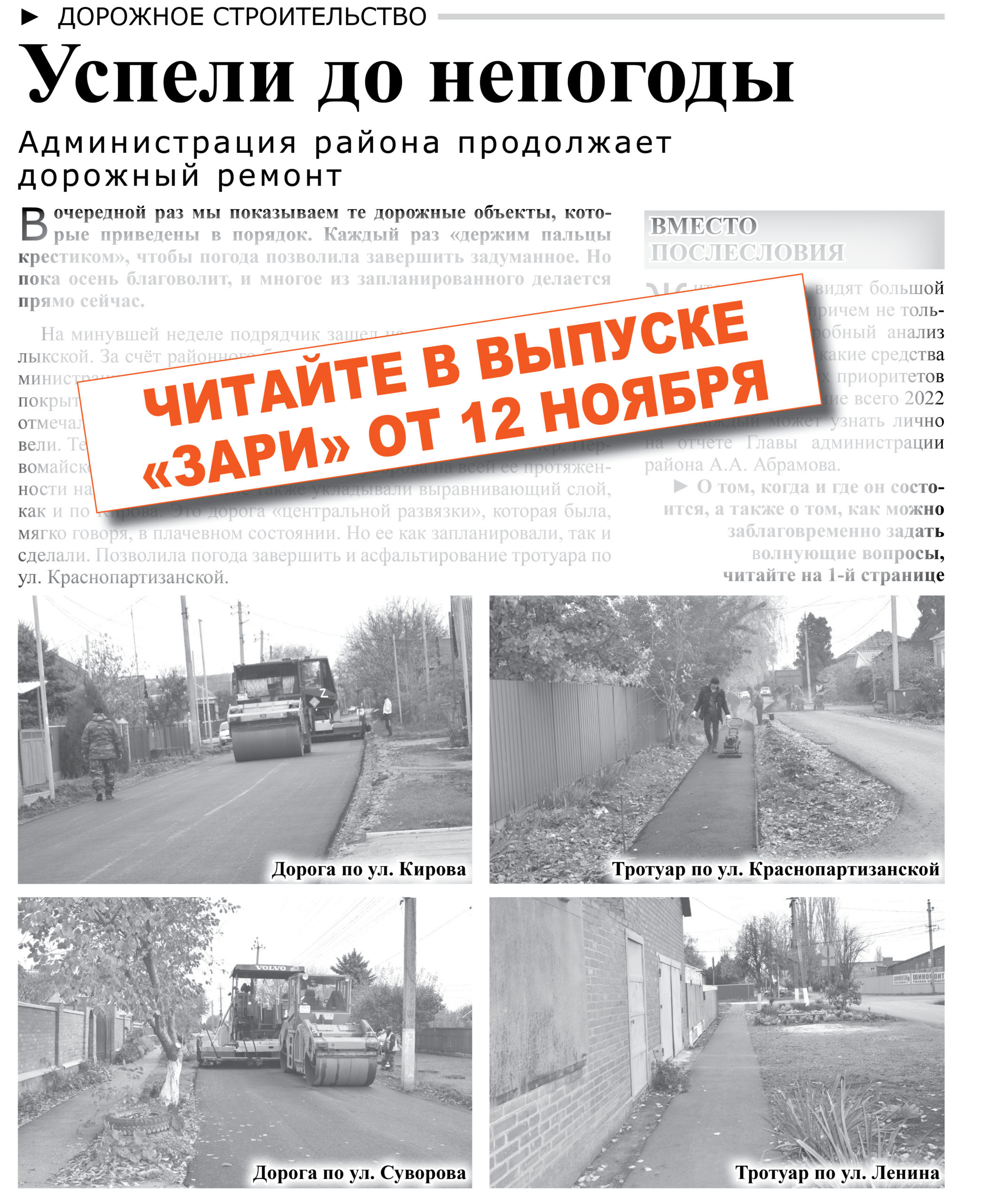 НОВЫЙ НОМЕР ГАЗЕТЫ «ЗАРЯ» ОТ 12 ОКТЯБРЯ В ПРОДАЖЕ!
