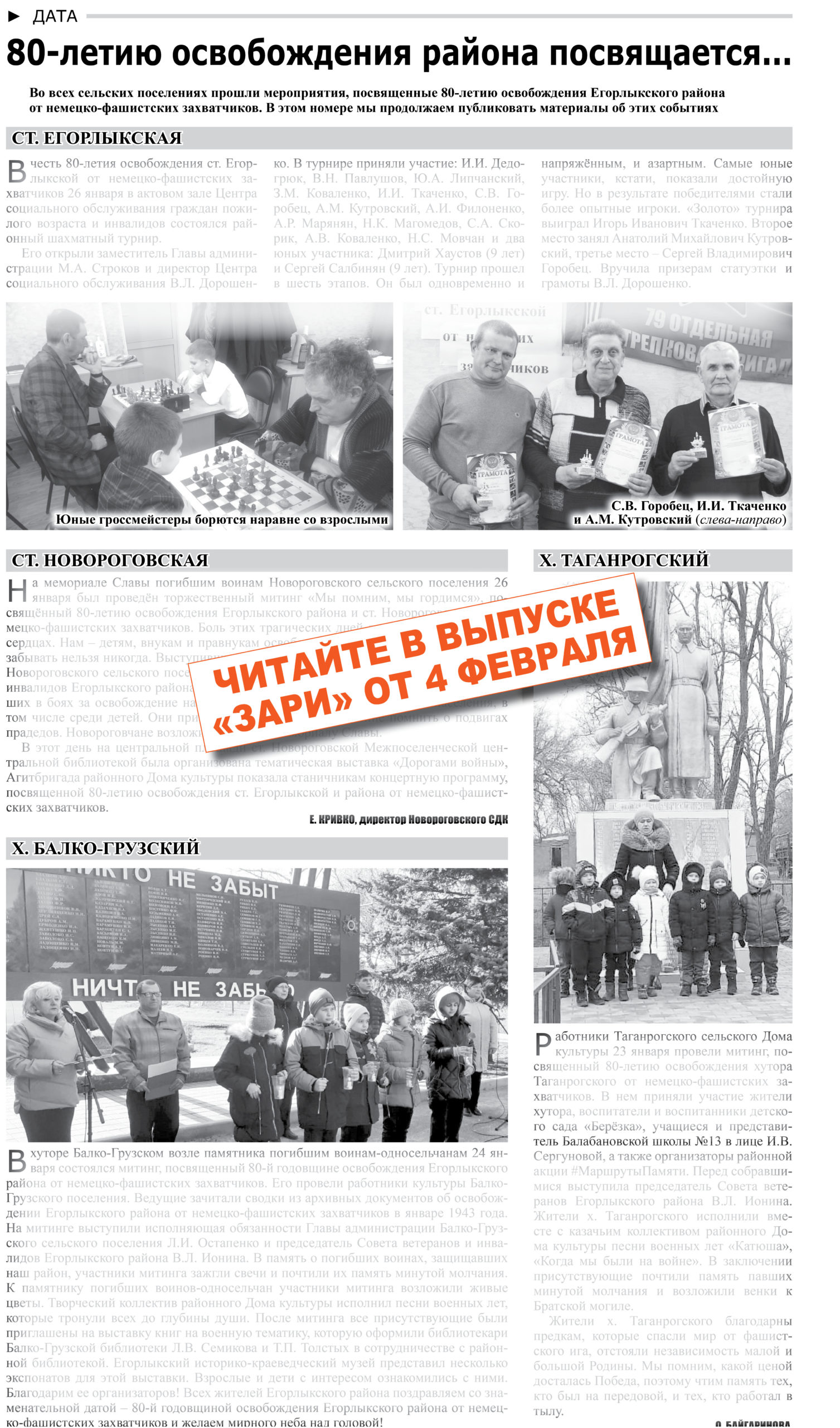 Муниципальные Дома культуры проводят бесплатные мероприятия на территории Егорлыкского района. Информируем вас об очередном таком мероприятии Дата: 6 февраля В программу мероприятия включены: • выставки• мастер-классы• выступление духового оркестра• выступление коллективов и воспитанников РДК Время проведения мероприятия: 14:30 Место проведения мероприятия: Районный Дом Культуры Источник иллюстрации mkbryansk.ru