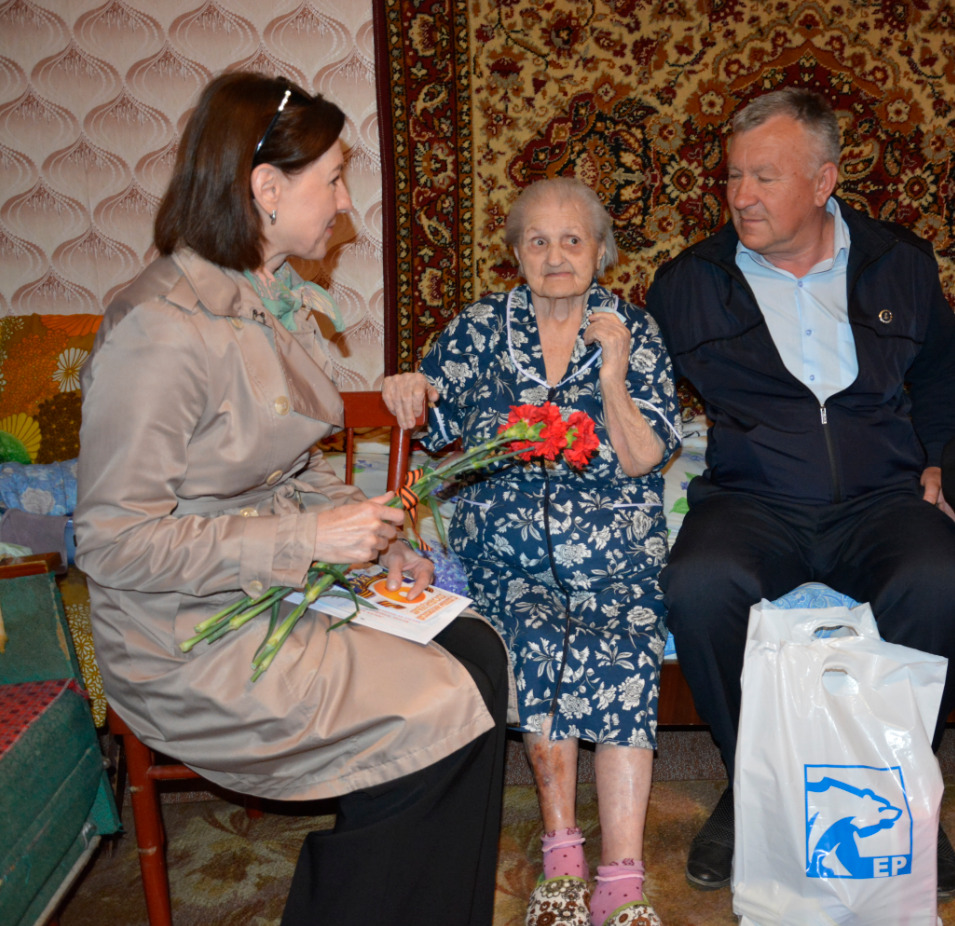 Праздничная делегация накануне 9 Мая посетила на дому ветеранов Великой Отечественной войны Вместе с делегацией мы побывали у Надежды Мефодьевны Джуренко, ведь ей в Победном Мае 2023 года исполнится 100 лет! В годы войны она прошла Ленинградский фронт, участвовала в освобождении Сталинграда и Курска. В преддверии 9 Мая ее приехали поздравить начальник управления социальной защиты…