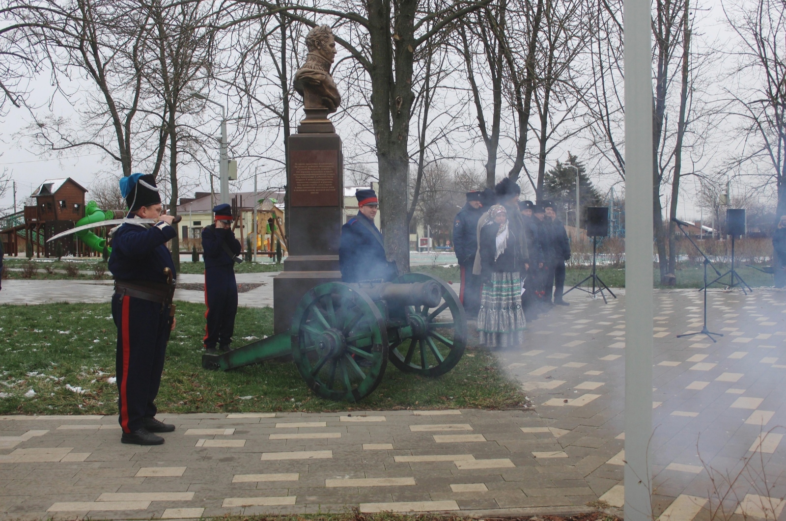 Егорлыкский историко-краеведческий музей в своей официальной группе в ВК написал об открытии бюста императору Александру I и о пушечных залпах. Цитируем: 12 декабря в Парке Культуры и Отдыха был открыт бюст императору Александру I. Инициаторами появления памятника выступили : ЮКО «Егорлыкий юрт», ДЮСШ, «Егорлыкский историко-краеведческий музей», при поддержке Администрации. Напомним, что именно подпись Александра I…