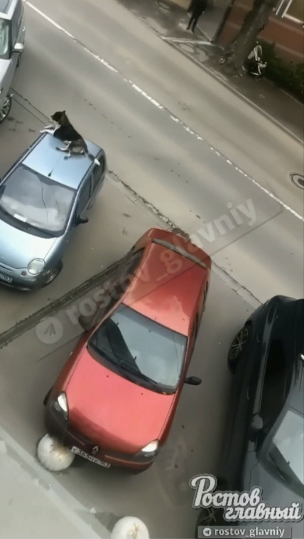 В Ростове собаки залезли на крыши иномарок