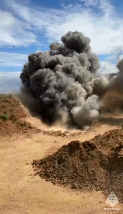 Пиротехнический расчет Донского спасательного центра МЧС России уничтожил очередную находку времён Великой Отечественной войны. Об этом сообщили в телеграм-канале МЧС Ростовской области. Авиабомбу обнаружили накануне в карьере в полутора километрах от поселка Щедрый. Специалисты вывезли ФАБ-50 на полигон и подорвали. Фото: кадр из видео