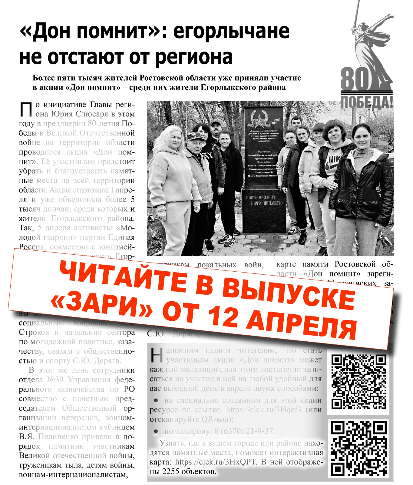 Анонс газеты «Заря» от 12 апреля