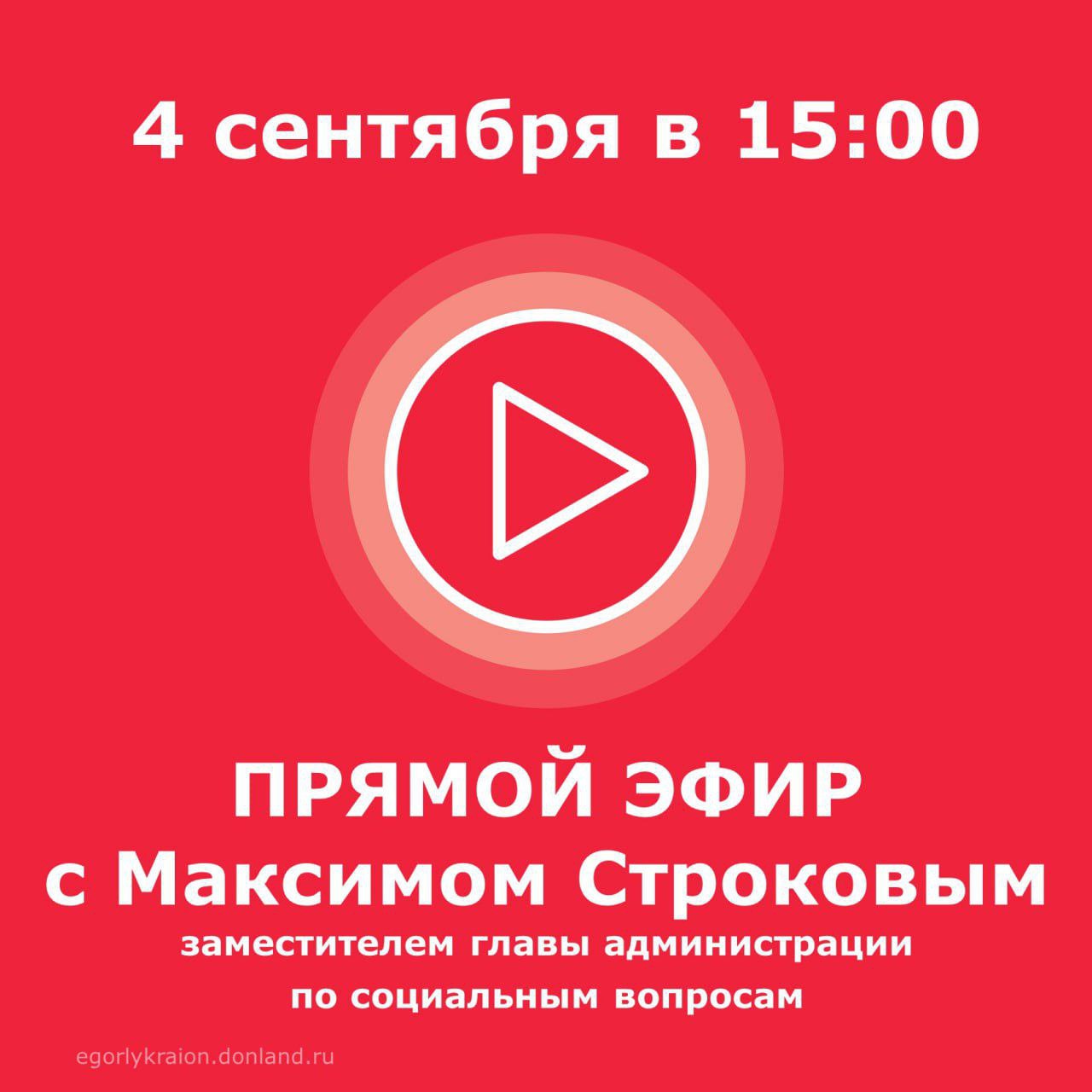 ❗️❗️❗️ Уважаемые жители Егорлыкского района! 4️⃣ сентября в 15:00 заместитель главы администрации Егорлыкского района по социальным вопросам Максим Строков ответит на вопросы граждан в прямом эфире: https://vkvideo.ru/video-194269280_456239430 💬📢❓Задать все интересующие вас вопросы, касающиеся социальной сферы района, можно через платформу обратной связи по ссылке: https://clck.ru/3NrXqS.