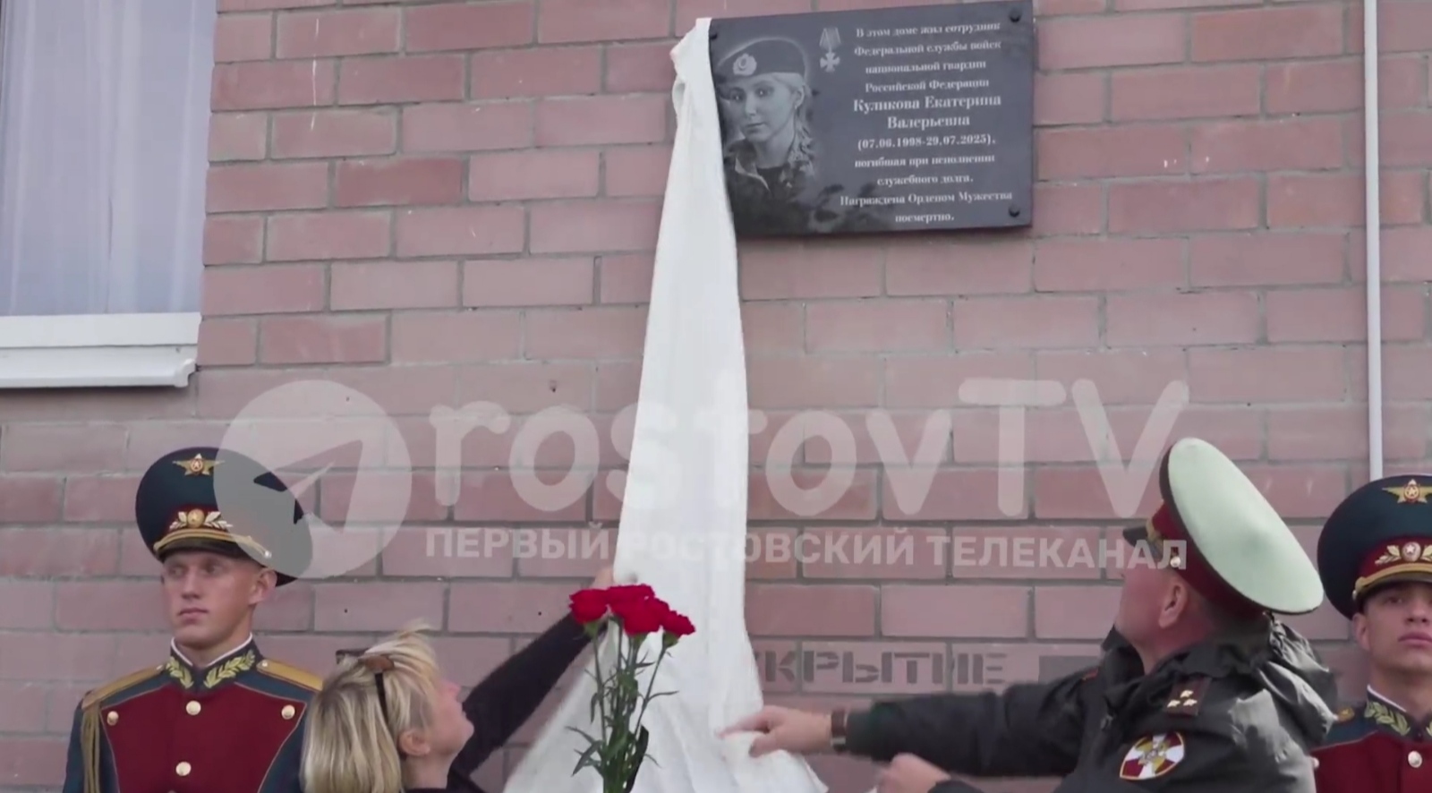 Открыли мемориальную доску Екатерине Куликовой, погибшей при обезвреживании БПЛА в Сальске