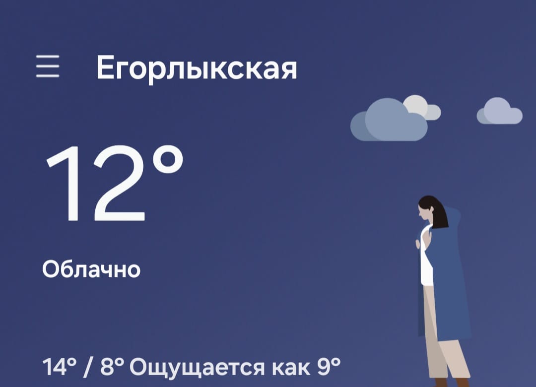 По данным сайта «365 по Цельсию», 29 октября 2025 года в Егорлыкской (Егорлыкский район) ожидается: Днём: +14 °C, переменная облачность, ощущается как +15 °C. Вероятность осадков — 40%. Ветер 5 м/с. Влажность воздуха — 69%. Атмосферное давление — 767 мм рт. ст. Ночью: +9 °C, местами дождь, ощущается как +7 °C. Рассвет в этот день наступит в 06:53, закат — в 17:05. ФОТО: скриншот виджета погоды с телефона ▶️ Налоговая служба начнёт автоматически…