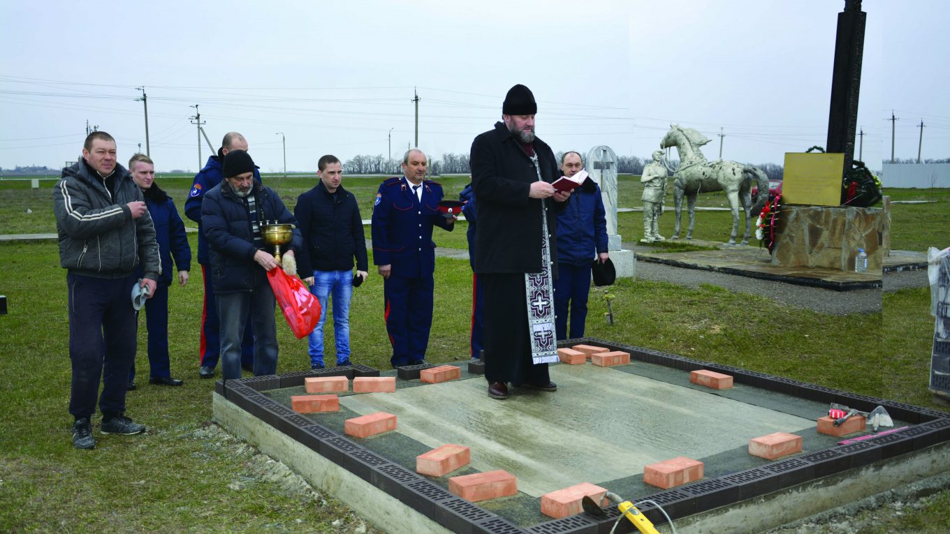 В станице Егорлыкской началось возведение третьей по счету часовни, которая строится на месте кровопролитного казачьего сражения времен Гражданской войны (район «кавалерского кольца») Состоялось освящение фундамента – чин освящения провел настоятель Храма Святителя Николая Чудотворца, протоиерей Георгий (Цуркану), приняли участие зам. Главы администрации Егорлыкского района Н.Ю. Афанасьев, врио атамана Егорлыкского казачьего юрта Д.Н. Санин, юртовые казаки….
