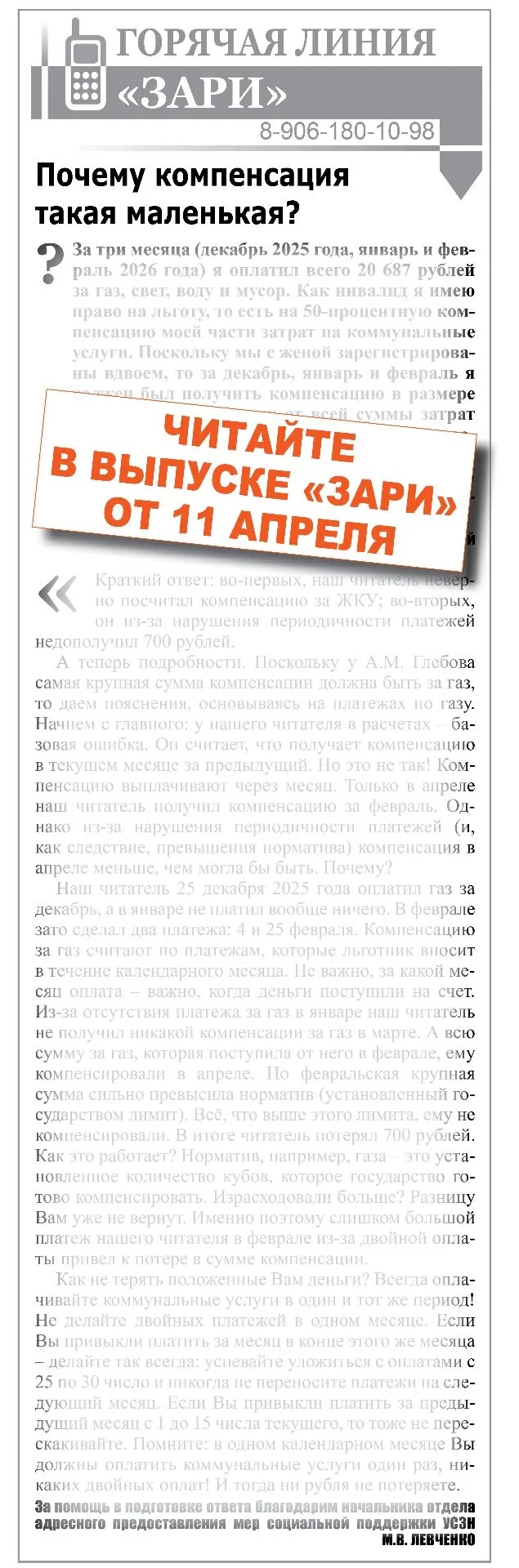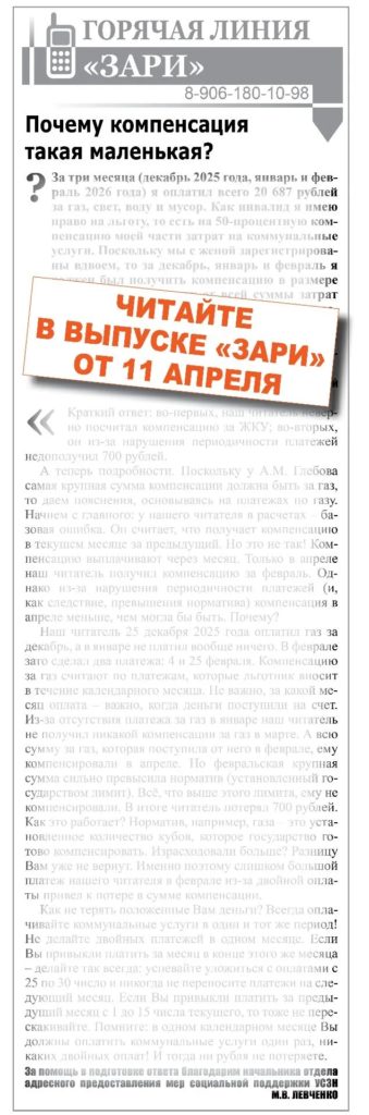 Новый номер газеты «Заря» от 11 апреля