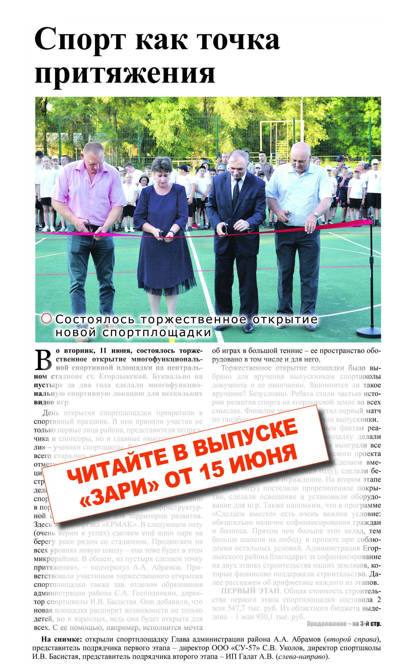 НОВЫЙ НОМЕР ГАЗЕТЫ «ЗАРЯ» ОТ 29 ИЮНЯ