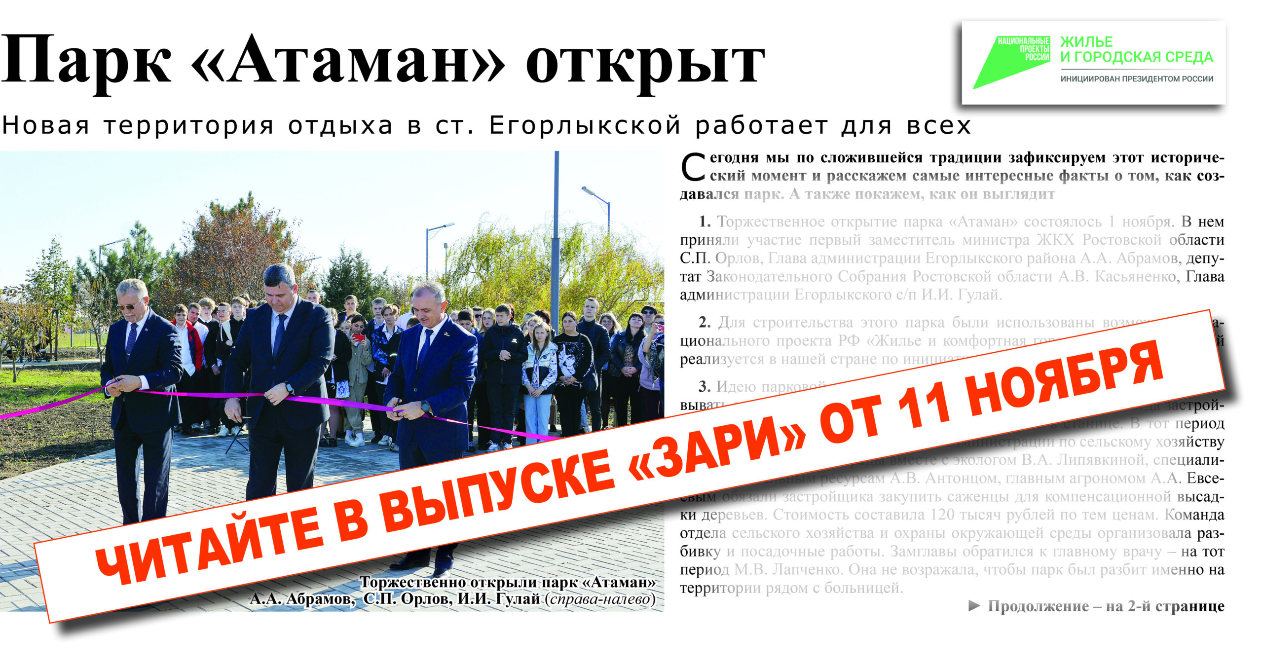 НОВЫЙ НОМЕР ГАЗЕТЫ «ЗАРЯ» ОТ 11 НОЯБРЯ 10 ноября 2023 Уже сегодня читатели могут приобрести свежий номер газеты «Заря», который поступил в продажу в магазины ст. Егорлыкской