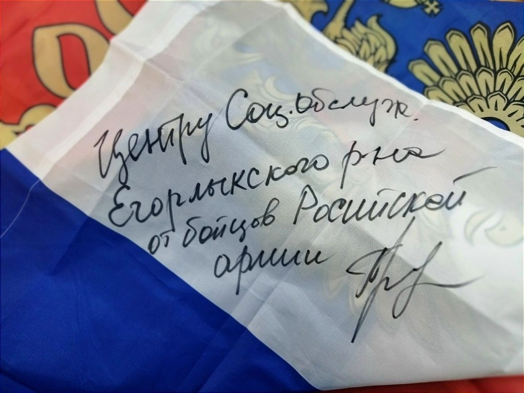 18 декабря 2025 года в адрес МБУ ЕР «ЦСОГПВиИ» получена благодарность за оказываемую гуманитарную помощь ребятам в виде флага России с подписью «От бойцов Российской армии».
