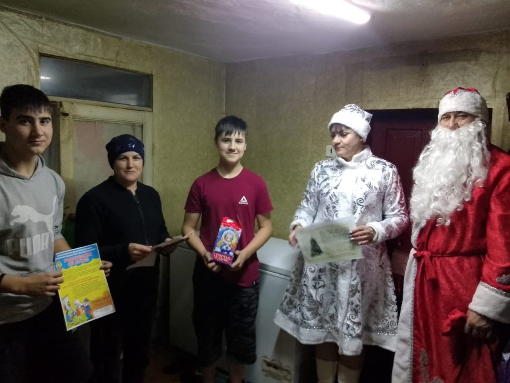 Активное участие в акции приняли сотрудники сельского дома культуры. В образах Снегурочки и Деда Мороза они поздравили жителей с наступающим Новым годом и вручили детям сладкие подарки.