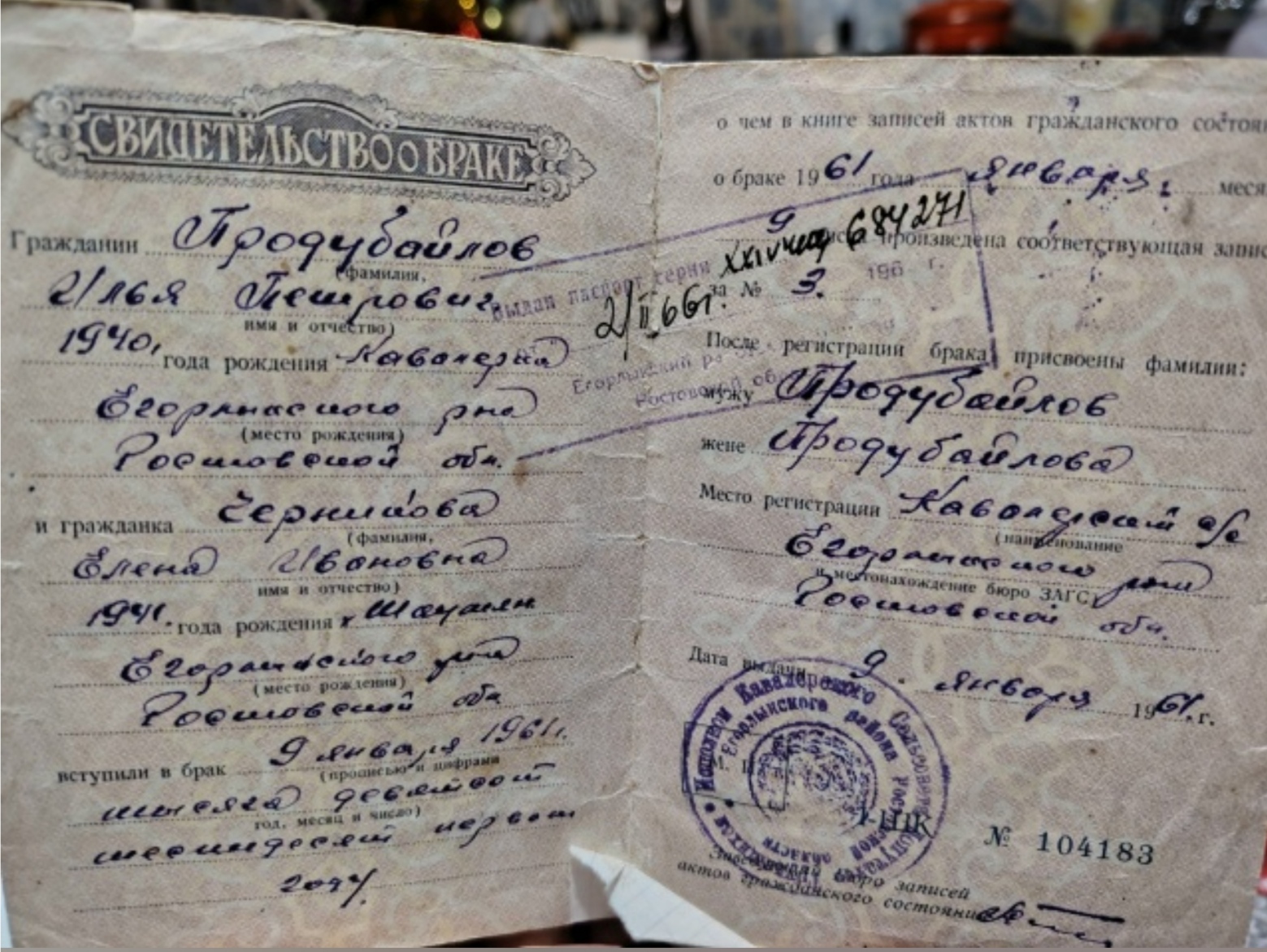 9 января 2026 года для Ильи Петровича и Елены Ивановны Продубайловых из хутора Кавалерский — день особенный, юбилей семьи – «Железная свадьба». Ровно 65 лет назад они зарегистрировали свой брак, чтобы рука об руку строить общее счастье.