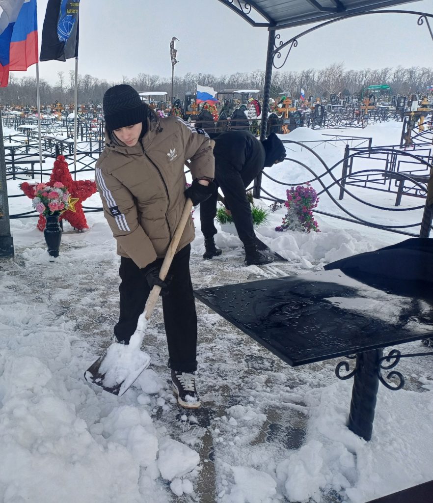 Даже снег и мороз не остановили школьный волонтёрский отряд «Добровольцы» в их важной и очень нужной миссии. В рамках всероссийской акции «Вахта Памяти» ребята привели в порядок места захоронения участников СВО.