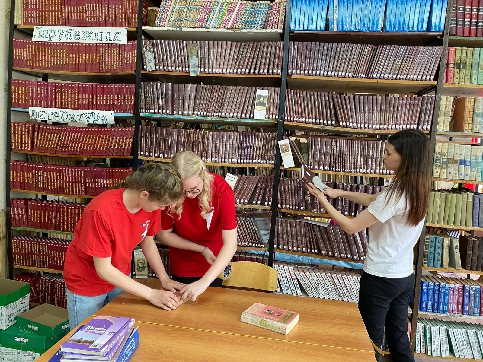 В рамках программы по развитию волонтерства и добровольчества «Первые во Благо» проекта «Благо Твори» провели генеральную уборку в школьной библиотеке.