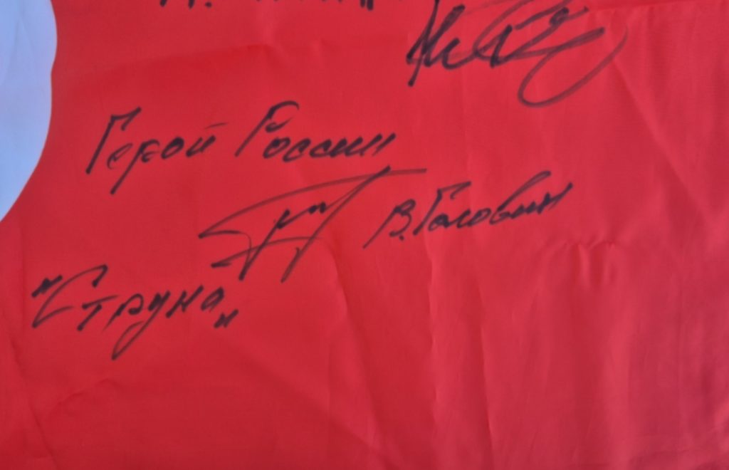 Кроме того, Вячеслав Николаевич оставил автограф на флаге юнармейского отряда, где участники специальной военной операции выражают свои пожелания и благодарность юнармейцам за их помощь и поддержку.
