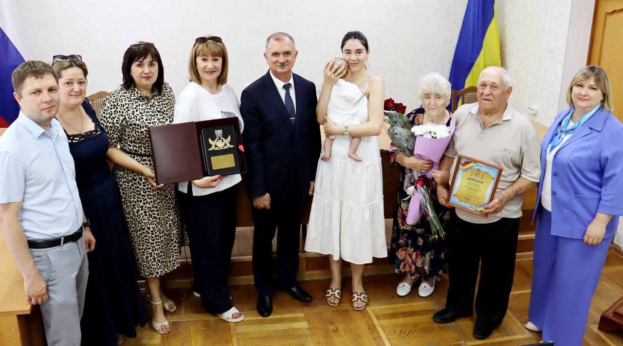 «Сегодня, в День семьи, любви и верности, вручил знак Губернатора Ростовской области «Во благо семьи и общества» супругам Куричевым Владимиру Ивановичу и Любови Александровне.