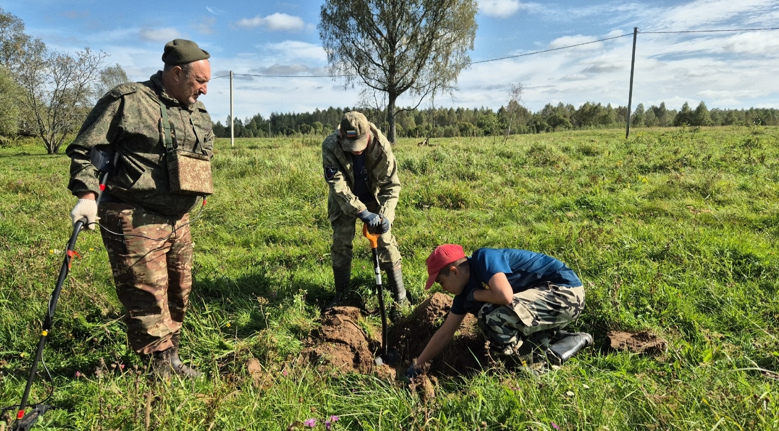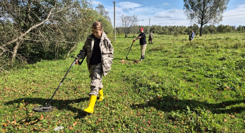 В этот раз юнармейцы учились вести работы с металлоискателем.