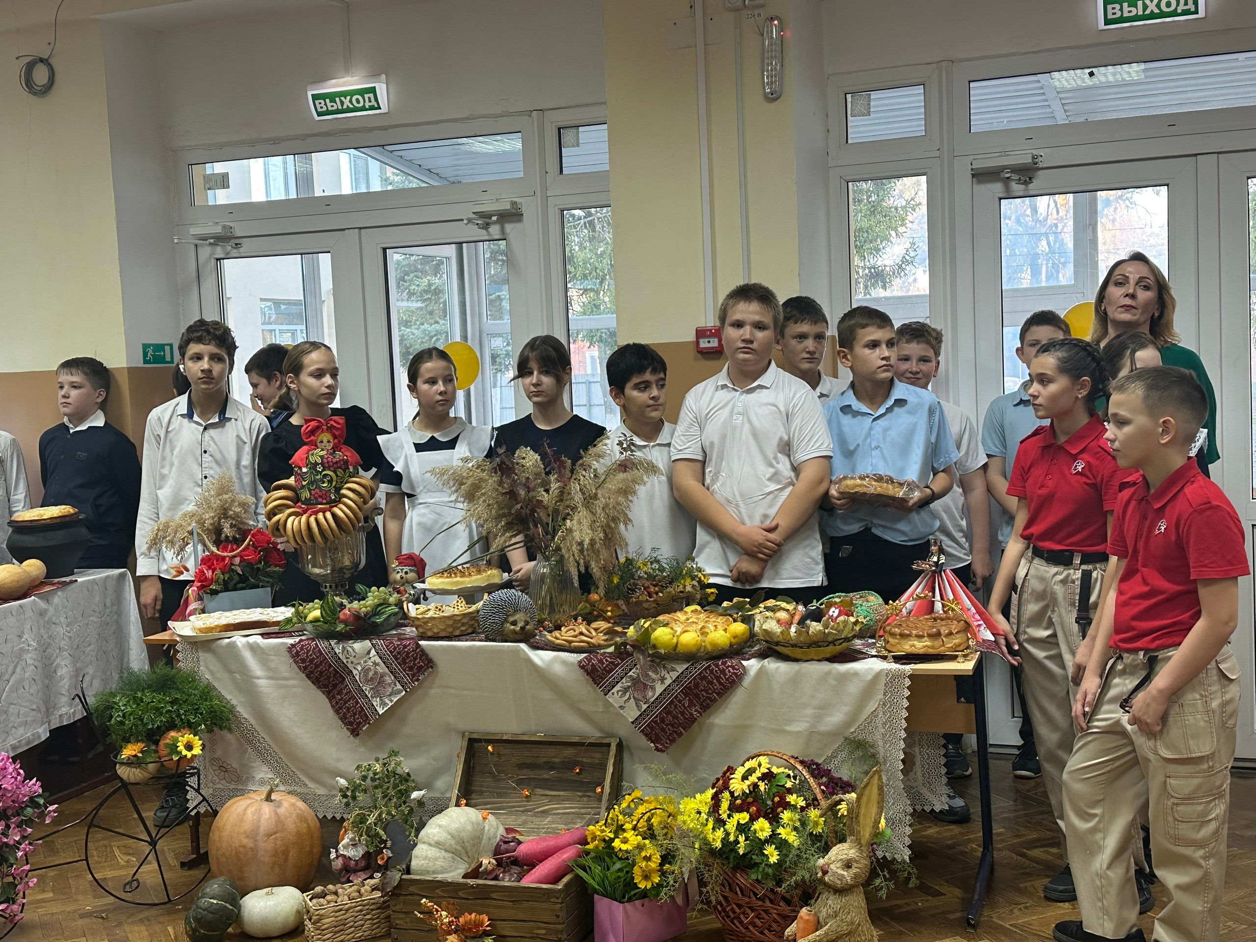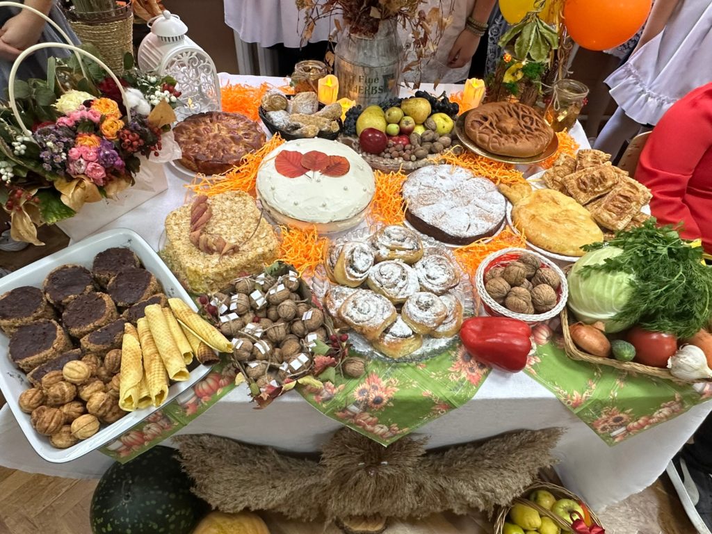 На столах красовались яркие овощные и фруктовые композиции, аппетитные блюда и осенние декорации, созданные с любовью.