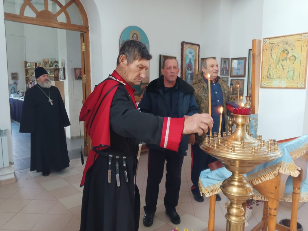 Перед началом церемонии казаки ЮКО «Егорлыкский юрт» посетили храм Казанской иконы Божией Матери.