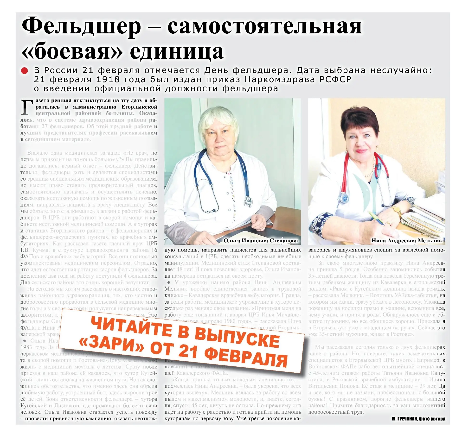 Новый номер газеты «Заря» от 21 февраля