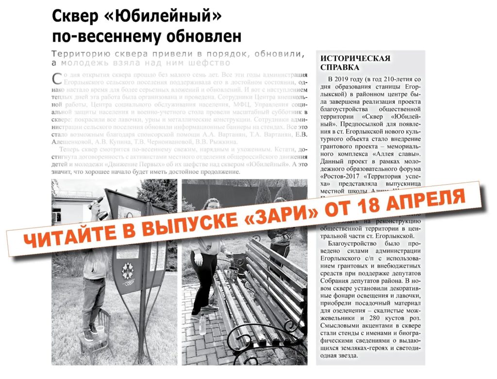 Уже сегодня читатели могут приобрести свежий номер газеты «Заря», который поступил в продажу в магазины ст. Егорлыкской.