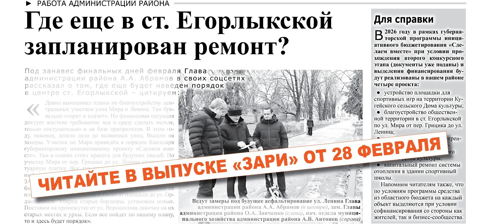 Новый номер газеты «Заря» от 28 февраля