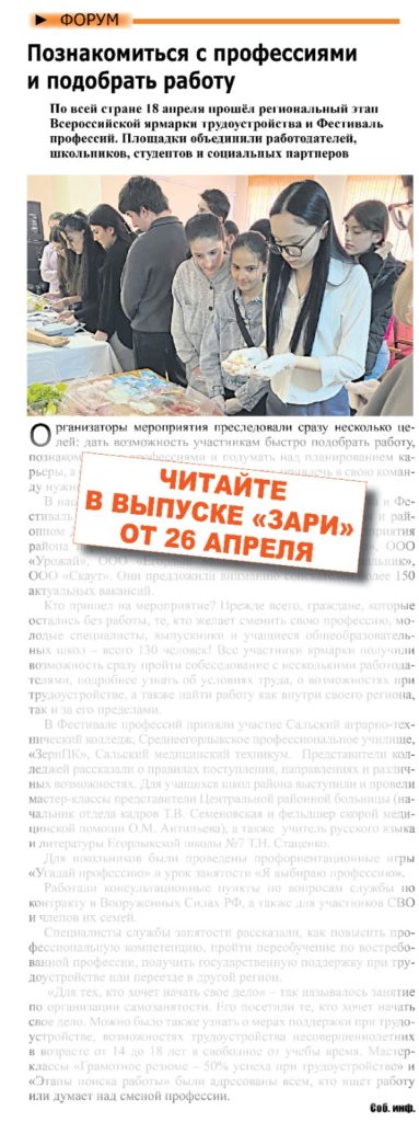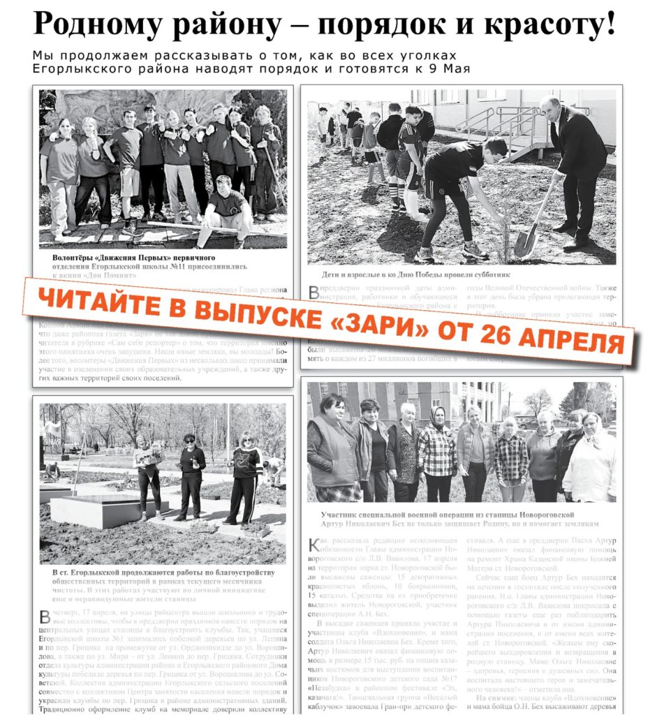 Новый номер газеты «Заря» от 26 апреля Уже сегодня читатели могут приобрести свежий номер газеты «Заря», который поступил в продажу в магазины ст. Егорлыкской Поделиться ссылкой: Метки: #анонсгазетыЗаря#Егорлыкскийрайон#новостиЕгорлыкскогорайона#новостирайона
