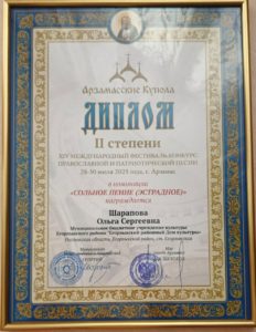 📌Режиссёр массовых представлений Егорлыкского районного Дома культуры и преподаватель Егорлыкской детской школы искусств Ольга Шарапова представила Егорлыкский район на XIV Международном фестивале-конкурсе православной и патриотической песни «Арзамасские купола».