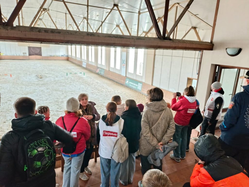 Сначала ребят провели по территории завода, познакомили с расположением и основными зданиями, после они посмотрели, как проходят занятия с лошадьми. А потом последовало погружение в историю.