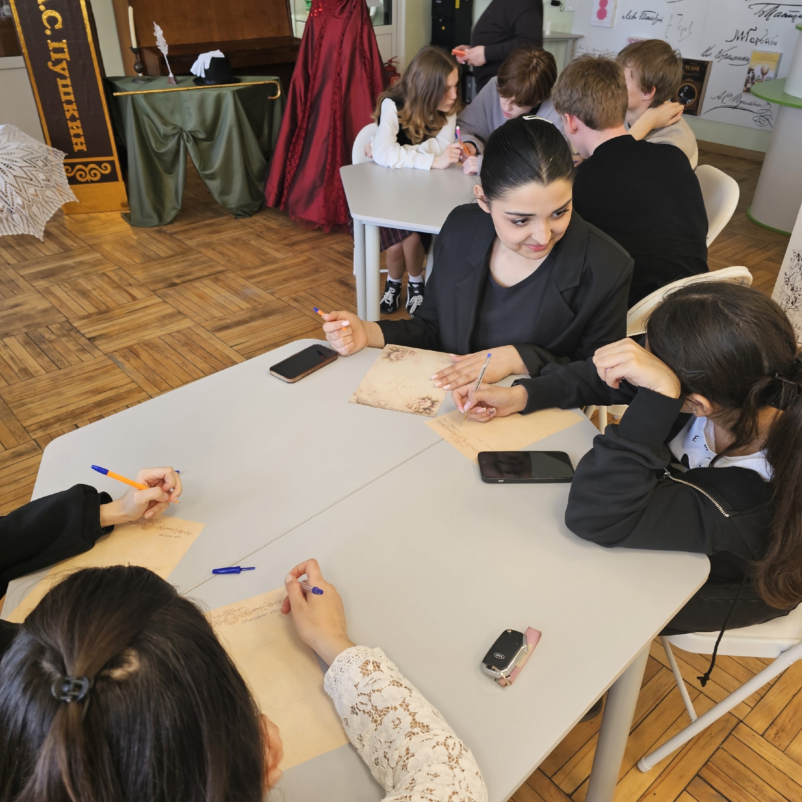 Участники окунулись в атмосферу позапрошлого столетия, узнали, как общались люди до появления мессенджеров и электронной почты, и даже попробовали себя в роли авторов старинных писем.