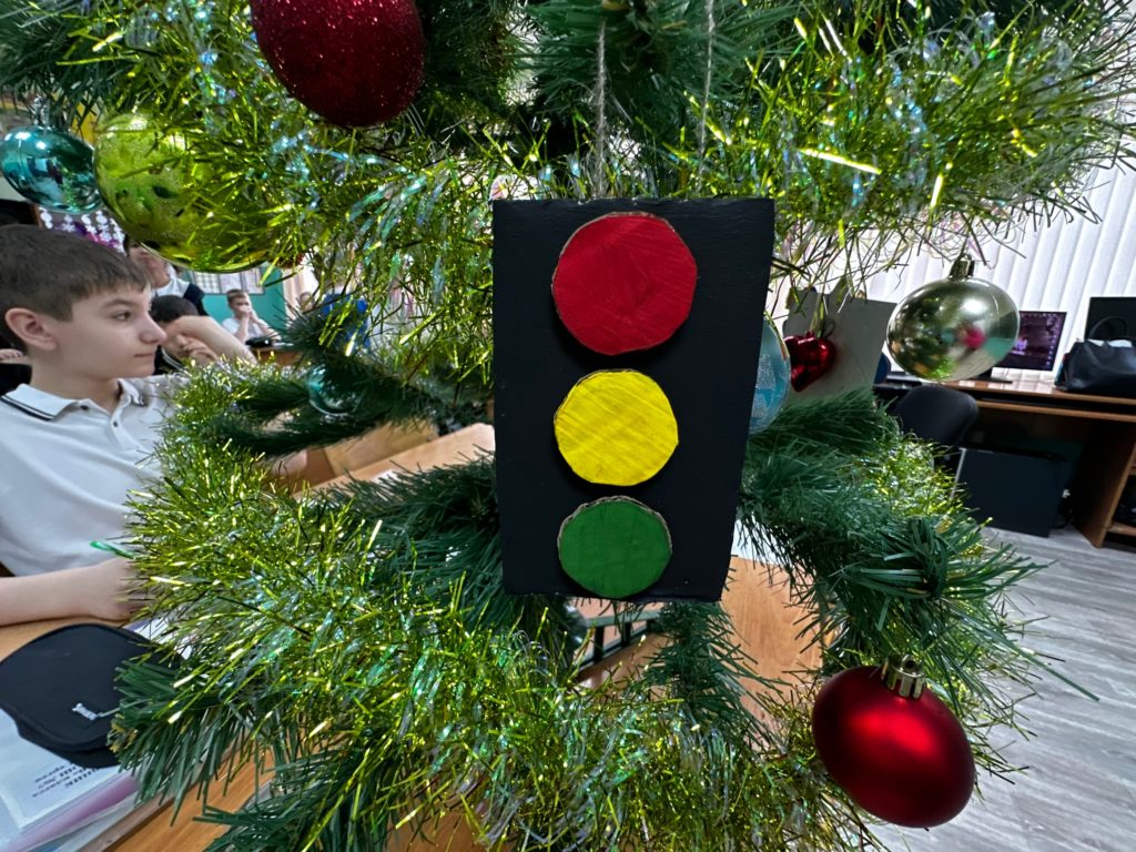 Отряд Юных инспекторов движения «Огоньки» совместно с инспектором по пропаганде безопасности дорожного движения ОГАИ ОМВД России по Егорлыкскому району Яниславом Вячеславовичем Лавриненко провели увлекательную акцию «Ёлка ПДД»!